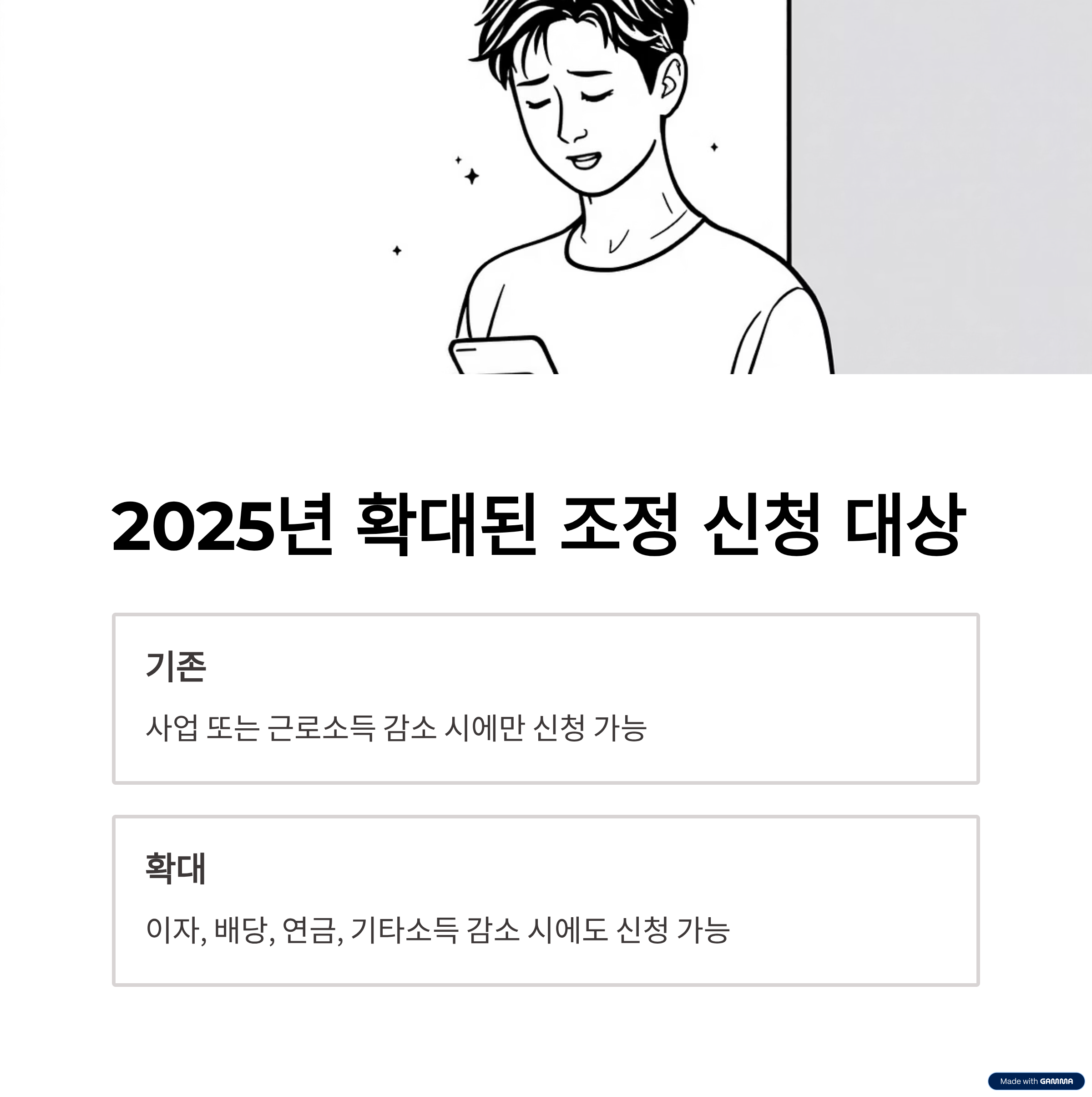 기존에는 사업 또는 근로소득이 줄어든 경우에만 신청이 가능했지만, 2025년 1월 1일부터는 그 범위가 크게 확대됩니다.