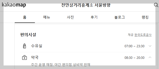 → 한국도로공사 홈페이지나 네이버 지도에서 ‘휴게소명 + 약국’ 검색하면 위치와 영업시간을 확인할 수 있습니다.