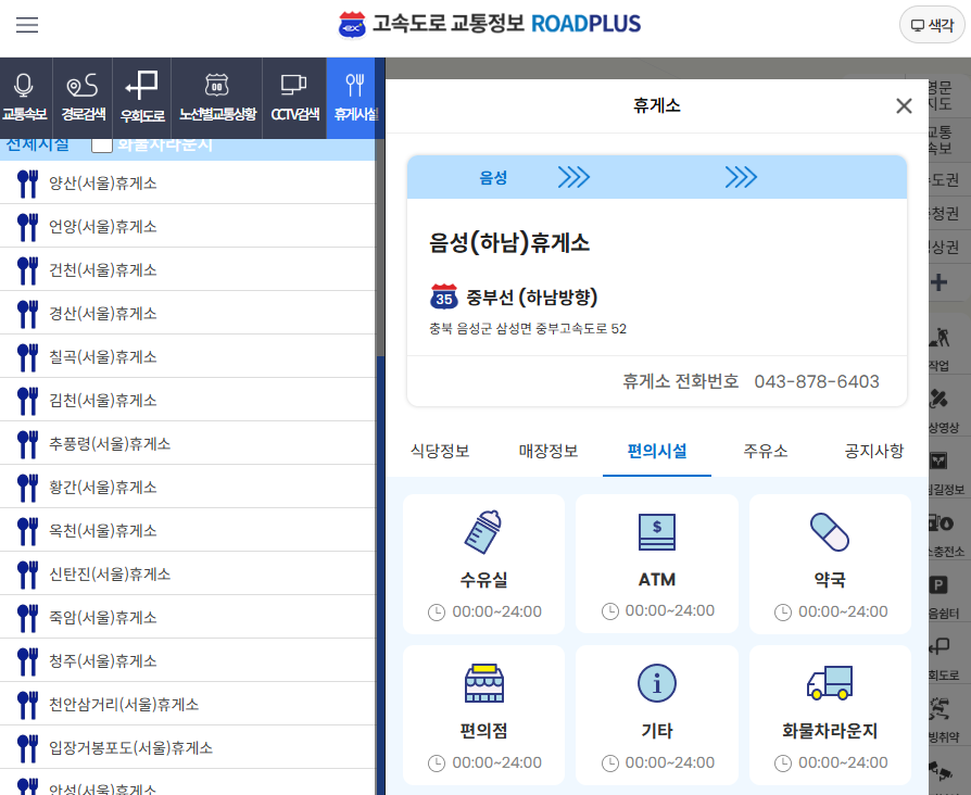 📌 휴게소 영업시간 & 위치 확인 : 한국도로공사 휴게소 안내 바로가기