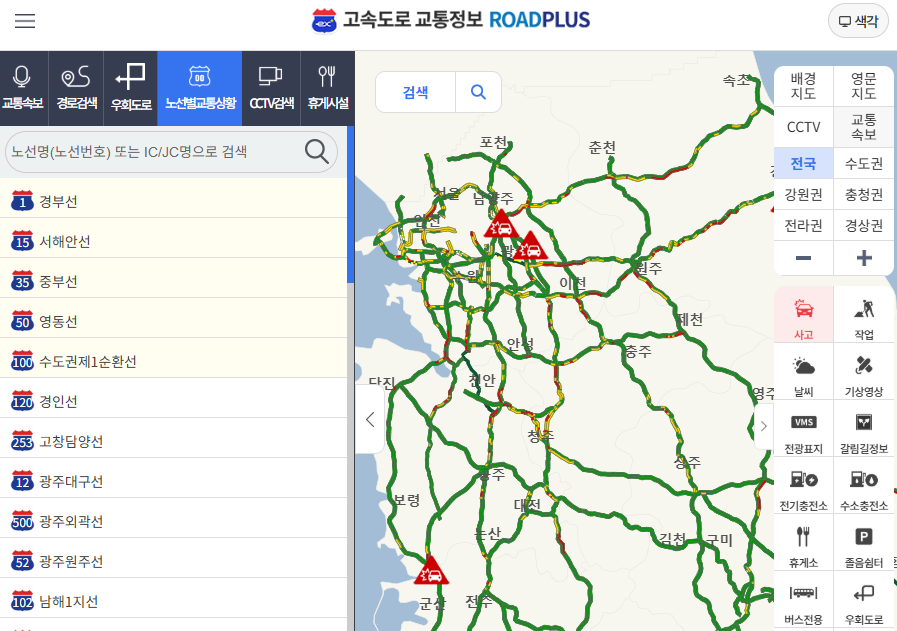 실시간 고속도로 교통상황, CCTV 문자 간편 확인 10초