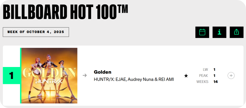 Q2. ‘Golden’은 실제로 차트 1위를 했나요?