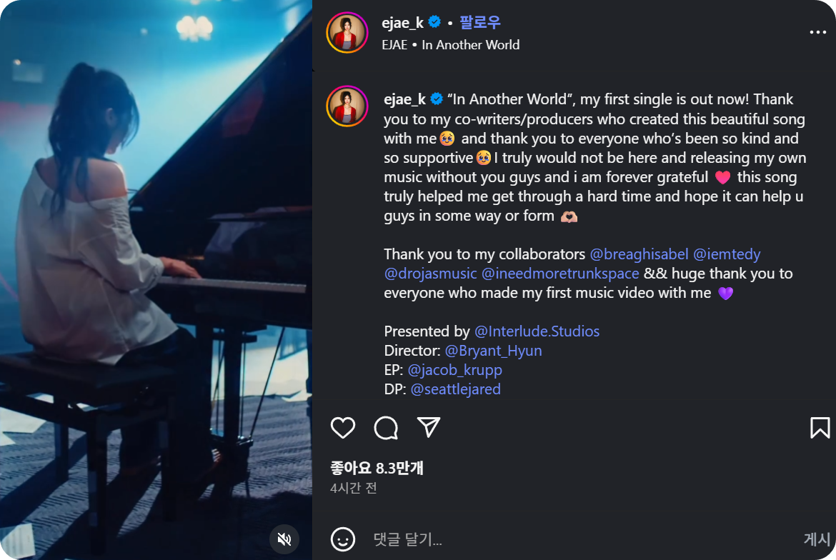 그녀에게 ‘In Another World’은 단순한 싱글이 아니라, 무대 뒤에서 무대 앞으로 나아오는 ‘이재만의 기록’입니다.