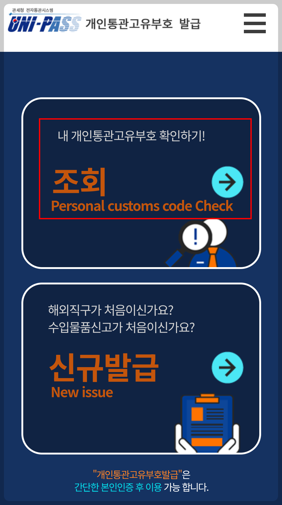 - 관세청 개인통관고유부호 발급/조회 사이트 접속