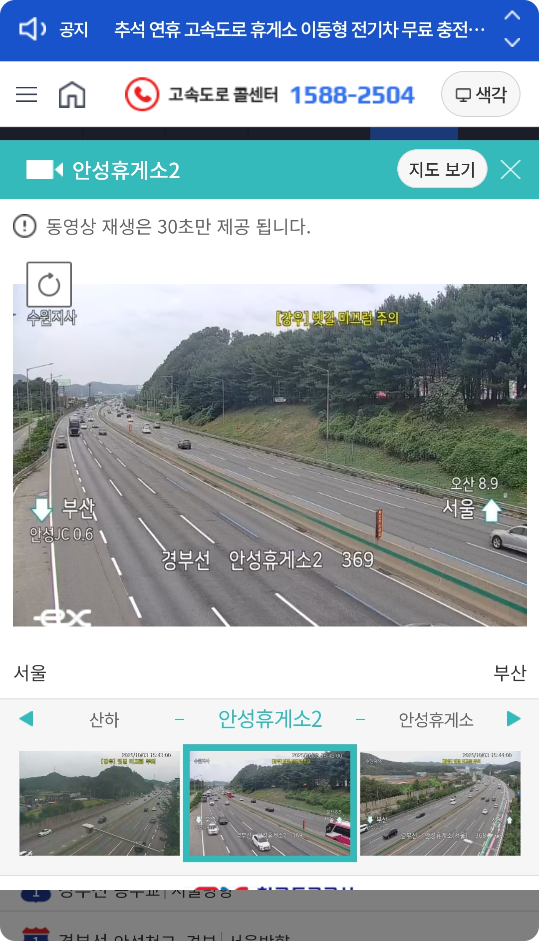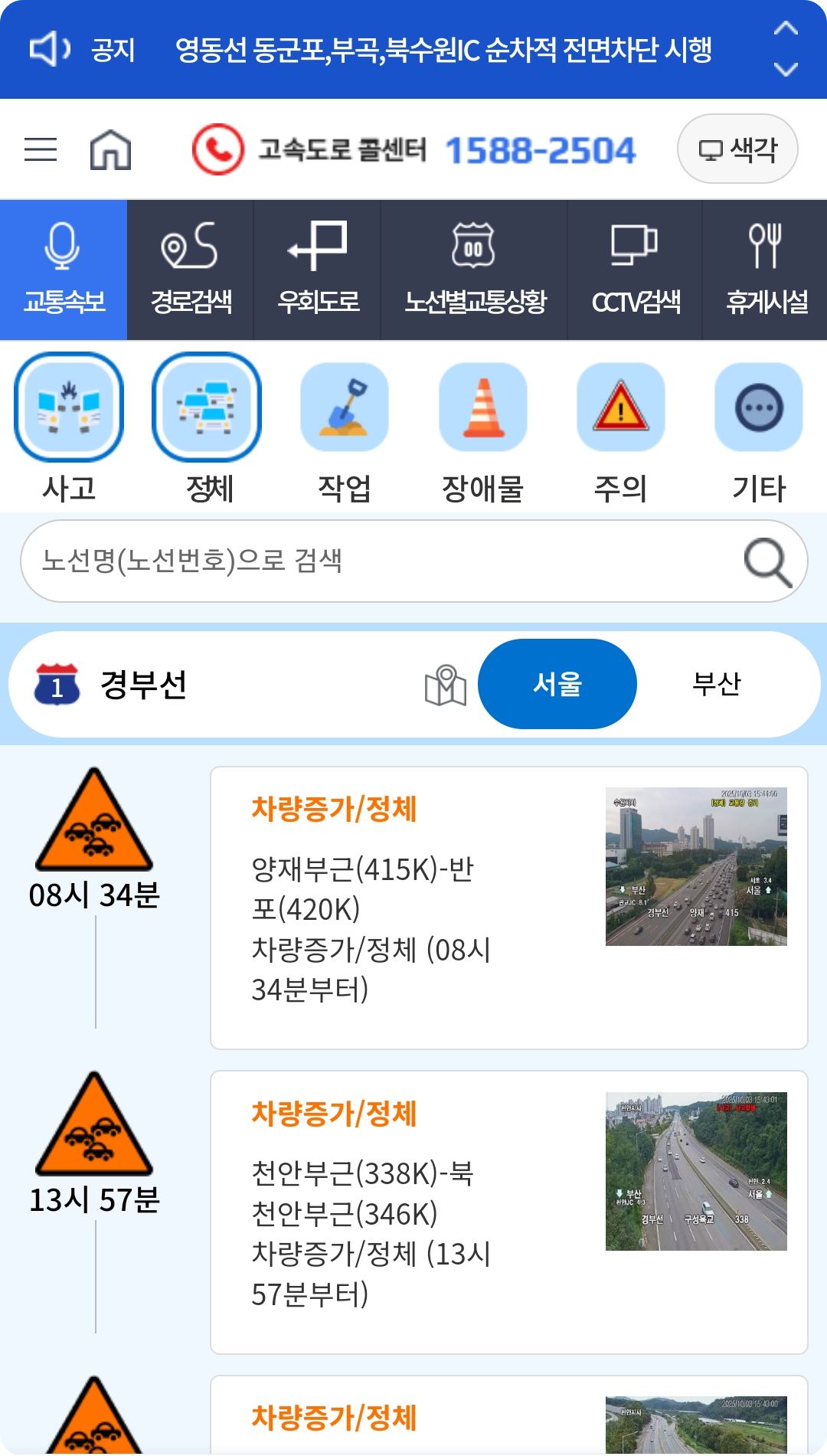 - CCTV 영상: 주요 고속도로와 국도의 교통 CCTV 확인 가능