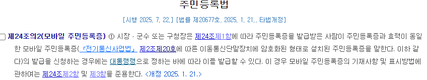개정된 주민등록법 제24조의2에 따라 실물 주민등록증과 동일한 법적 효력을 가집니다.