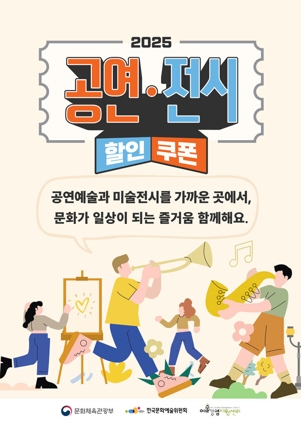 문화체육관광부는 국민의 문화 향유 기회를 넓히고, 예술 분야의 소비를 진작하기 위해 ‘문체부 공연할인권·전시할인권’을 배포합니다.