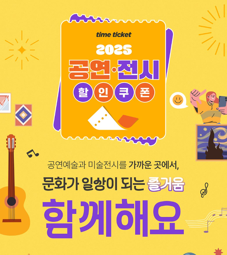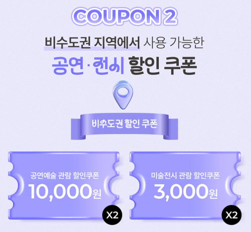 서울·경기·인천을 제외한 지역 공연·전시 전용 할인권은 타임티켓에서 추가 2매 제공됩니다.