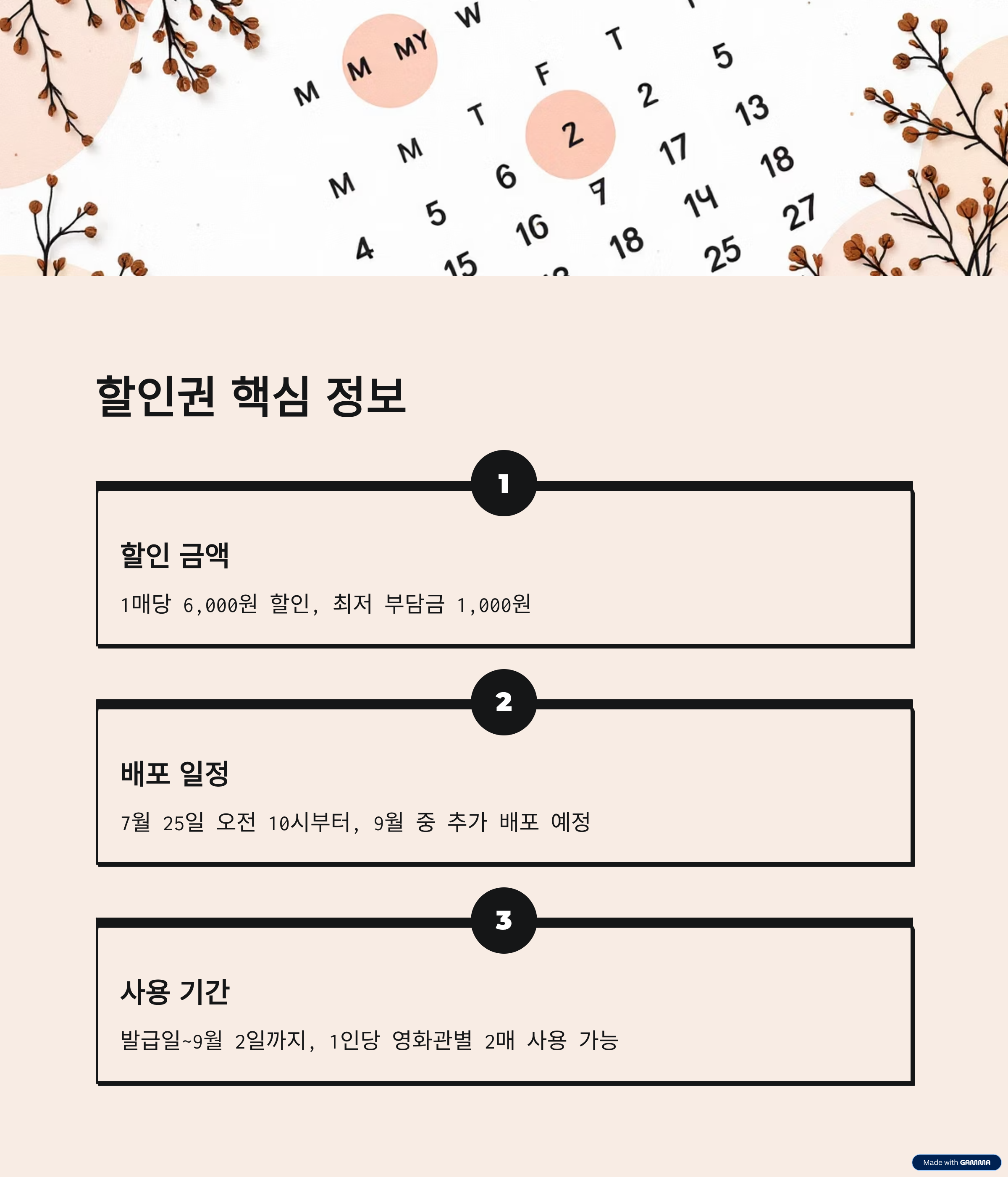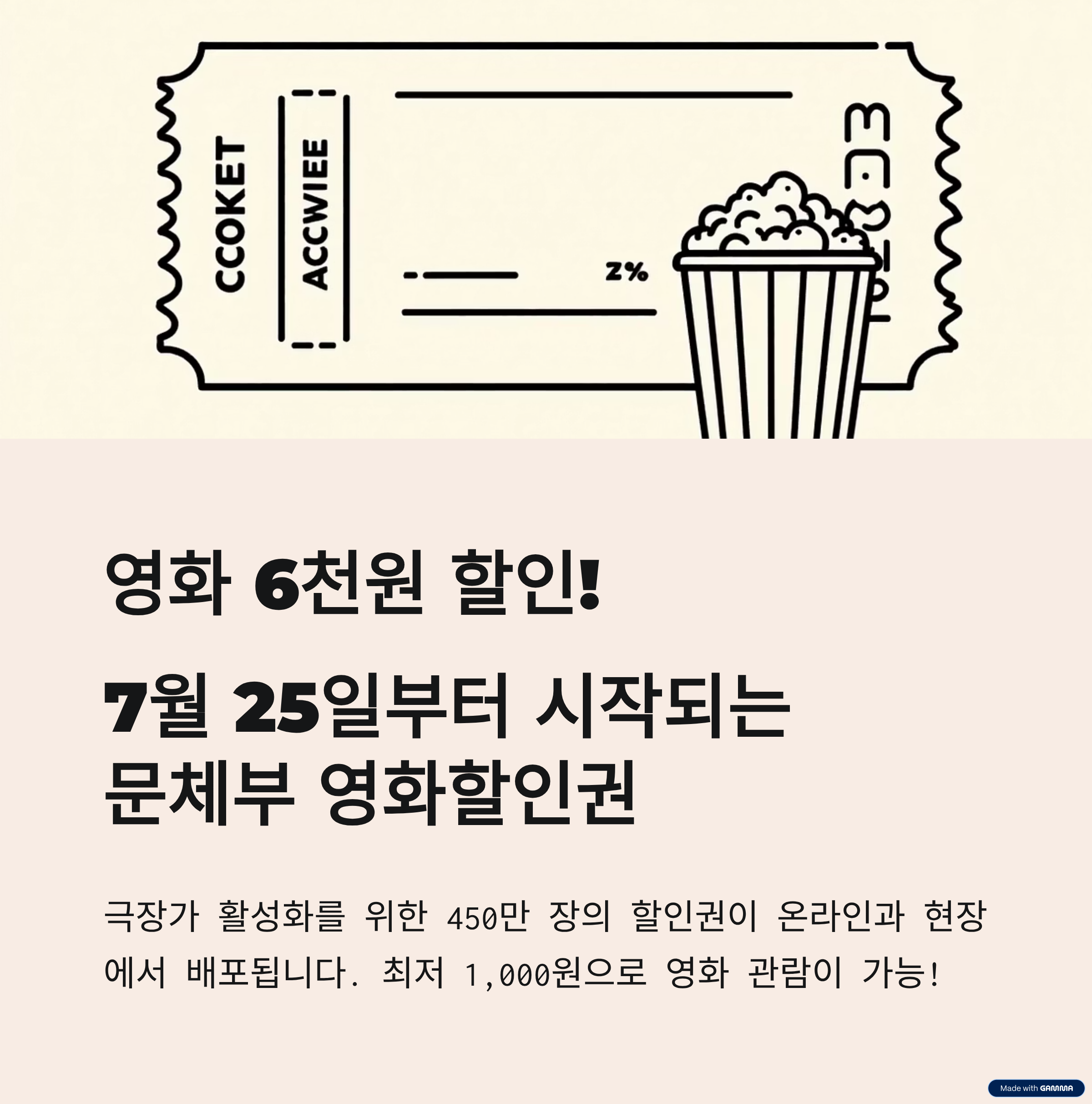 할인권은 7월 25일 오전 10시에 배포되며, 발급 방법, 중복 할인 조건, 사용 방법 등을 미리 숙지하여 현명하고 즐거운 영화 관람을 미리 준비해 보세요!