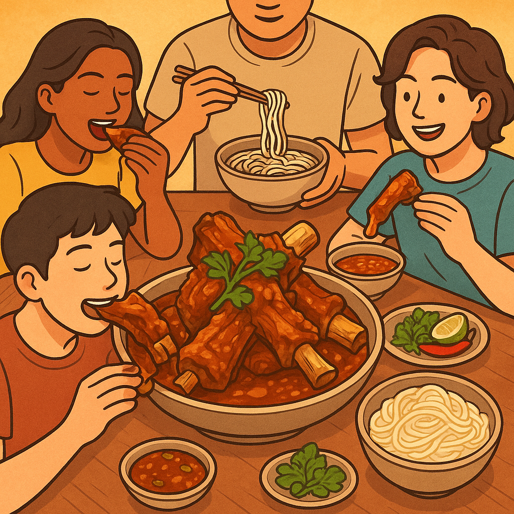 A. 감자탕은 진하고 구수한 맛이 특징이지만, 랭쎕은 새콤·매콤·달콤이 조화를 이루어 훨씬 이국적인 풍미를 느낄 수 있습니다.