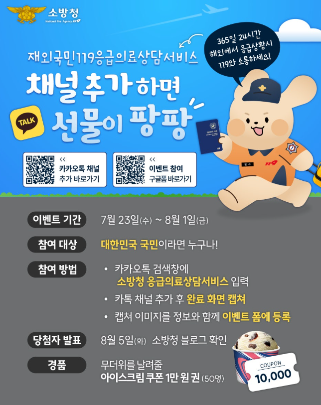 재외국민 119응급상담서비스 카톡 채널 추가 인증 이벤트