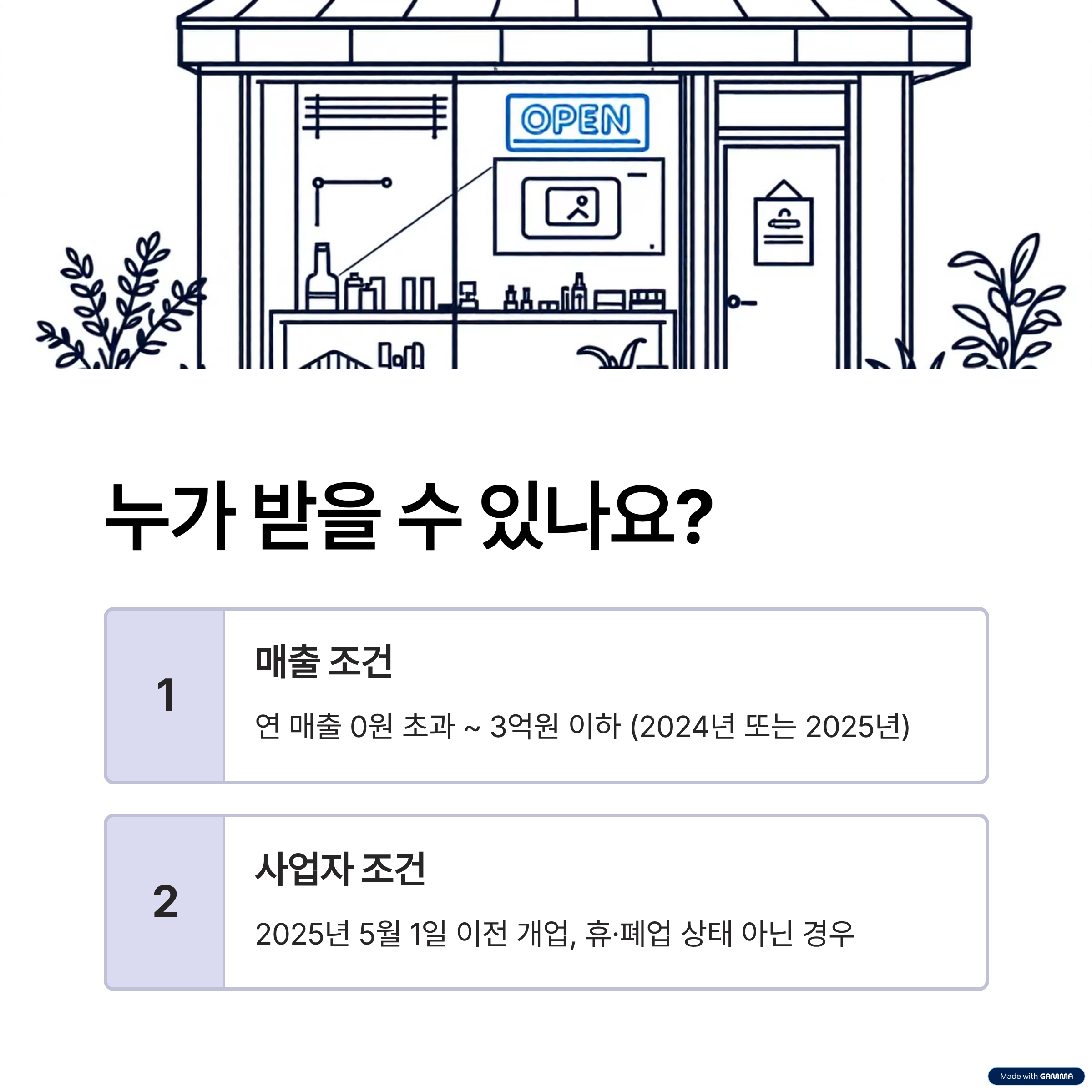 • 2024년 또는 2025년 연 매출 0원 초과 ~ 3억 원 이하
