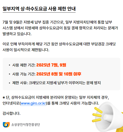 - 사용처: 전기, 가스, 수도 등 공과금 & 국민연금, 건강보험, 고용보험, 산재보험 등 4대 보험료