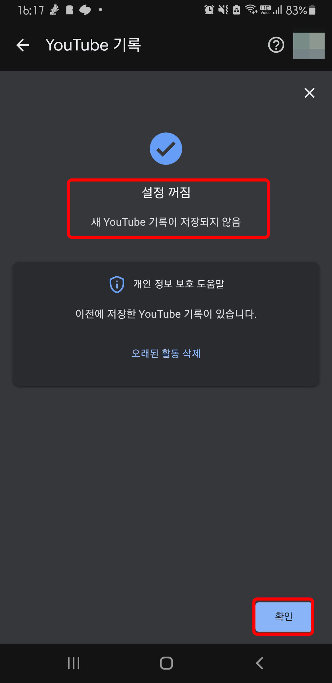 | 기록 저장 중지 | 새 기록 방지 가능 | 콘텐츠 추천이 부정확해질 수 있음 |
