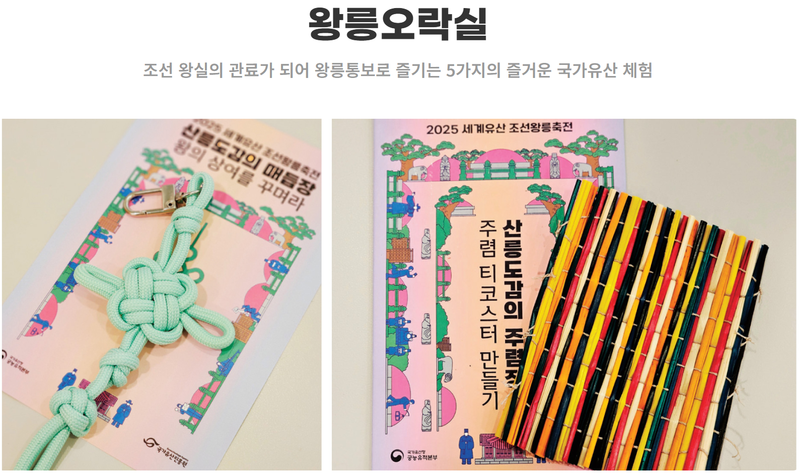 - 내용: 방문객이 ‘왕릉 수사대’가 되어 숨겨진 미션을 해결하는 탐정형 야외 방 탈출 게임. 완수 시 소정의 기념품도 받을 수 있습니다.