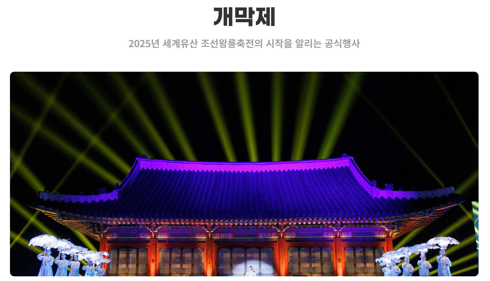 조선왕릉축전 2025년 세계유산 방문기는 500년 전 조선의 왕이 걸었던 길을 직접 걷고, 그들의 의식·예술·문화를 오늘의 기술로 다시 체험하는, 살아있는 유산의 축제입니다.