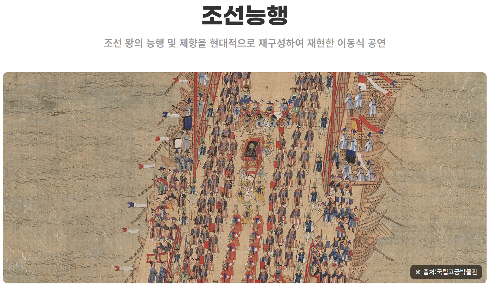 - 내용: 왕이 왕릉을 참배하던 ‘능행’ 의식을 재현하는 프로그램. 전통 복식, 가마 행렬, 의식 절차까지 완벽히 복원되어 사진 명소로도 인기가 높습니다.