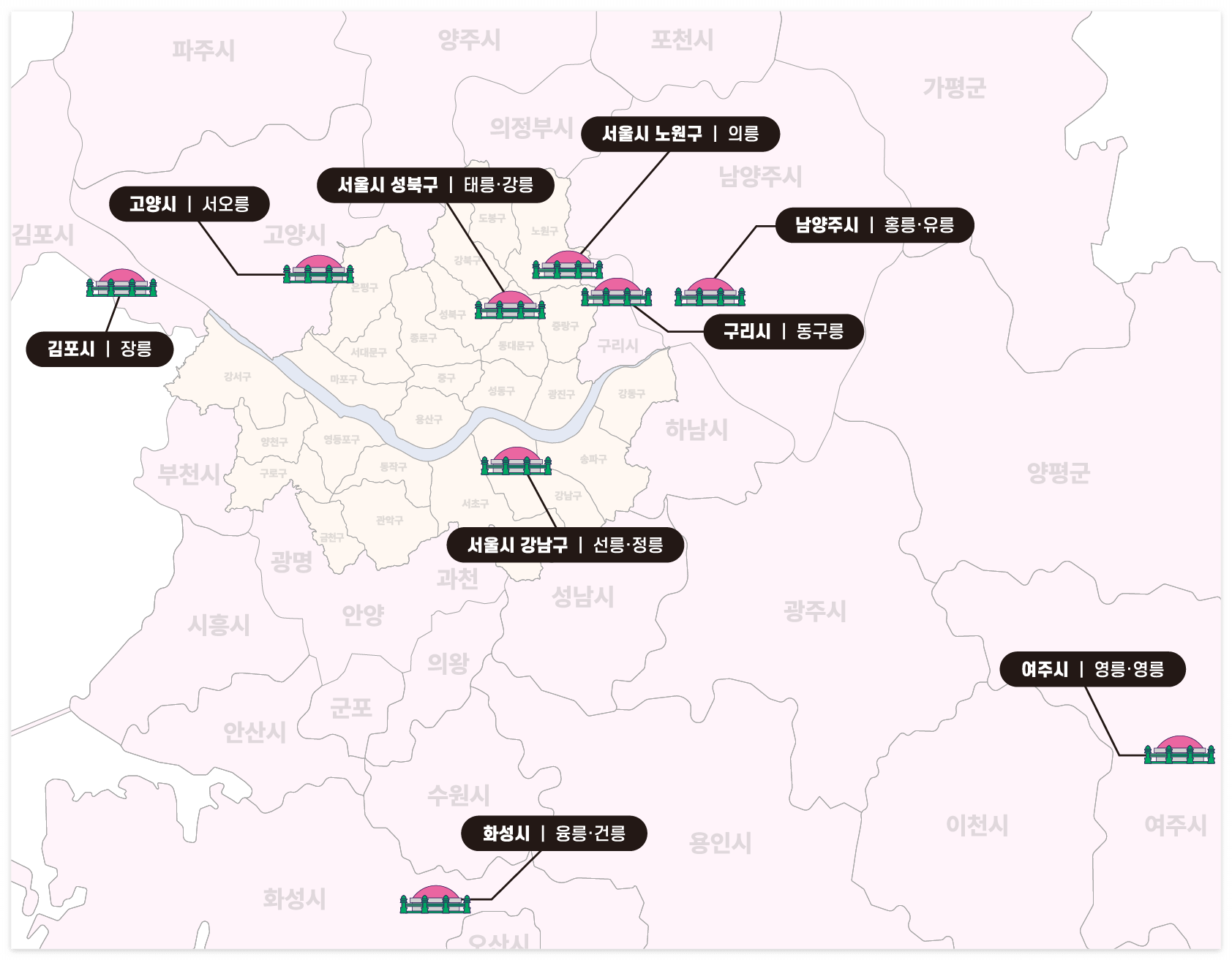 선릉·정릉 / 태릉·강릉 / 의릉 / 동구릉 / 홍릉·유릉 / 서오릉 / 융릉·건릉 / 김포장릉 / 영릉·영릉