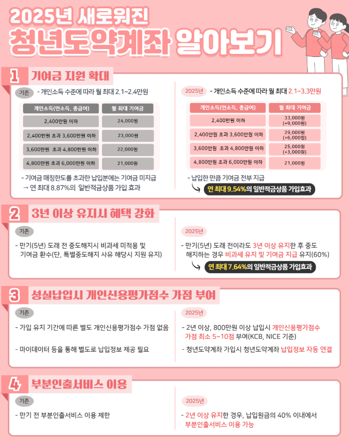 2025년 청년도약계좌는 다양한 측면에서 제도적 유연성이 대폭 강화되었는데요.