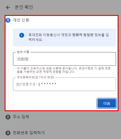 본인인증 절차 : 3단계