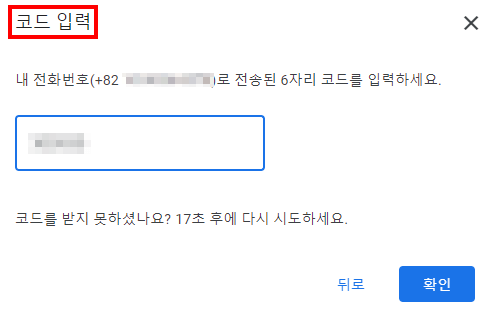 순차적으로 진행이 완료되면 곧 인증번호를 입력하라는 팝업 메시지가 뜹니다.