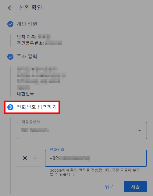 본인인증 절차 : 3단계