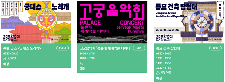 - 종묘 특별 개방: 평소 예약제로 운영되지만 축전 기간에는 예약 없이 관람 가능