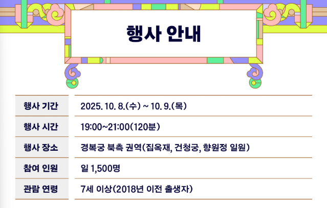 - 무료 개방: 추석 연휴(10월 3일~9일) 4대 궁궐·종묘 무료 개방 (단, 창덕궁 후원 제외)
