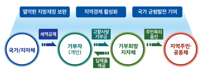 - 기부자는 세액공제와 답례품을 받을 수 있는 제도입니다.