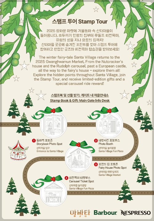 - 다양한 이벤트: 크리스마스 주간(12월 21일~25일)에는 산타클로스와 함께하는 포토타임, 크리스마스 요정의 선물 증정, 스탬프 투어 등 시즌 한정 프로그램이 운영됩니다. 또한, 월트디즈니, 바버, 네스프레소 등 글로벌 브랜드가 참여하는 특별 부스에서는 영화 속 세계관을 체험하거나 한정판 굿즈를 만나볼 수 있습니다.