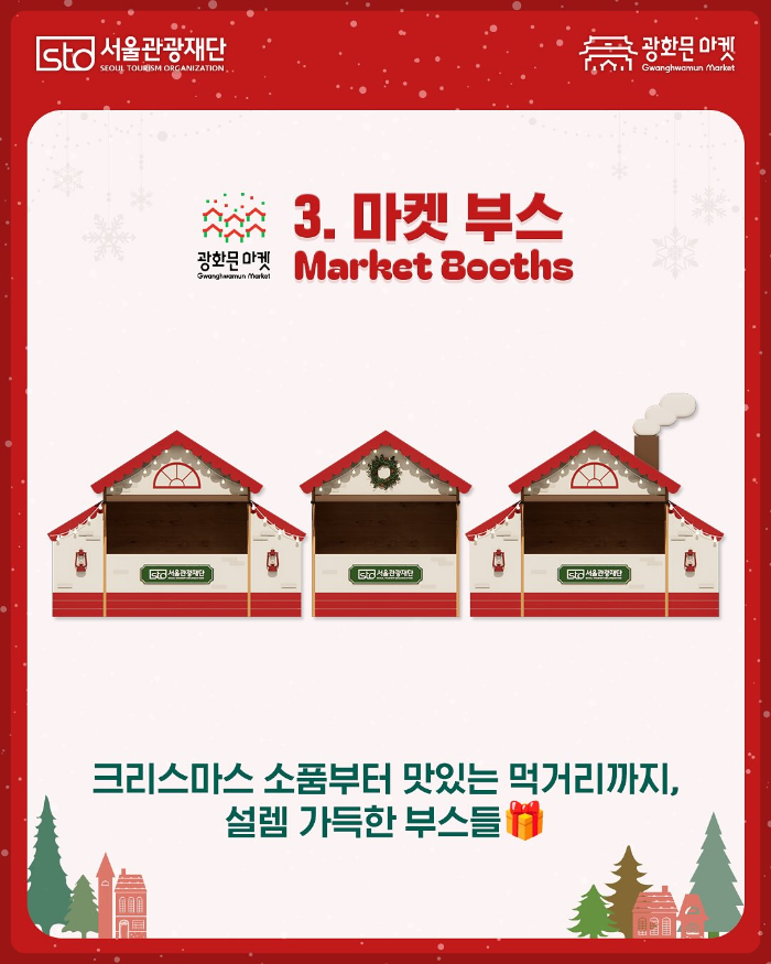 더불어 이번 광화문 크리스마스 마켓은 총 3개의 시즌으로 나뉘어 운영되며, 각 시즌마다 새로운 소상공인 팀이 참여하여 더욱 다채로운 상품들을 선보일 예정입니다.
