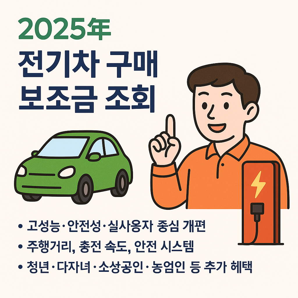 2025년 전기차 구매 보조금 제도는 고성능 전기차 장려, 청년·다자녀 가구 지원 확대, 환경 안전성 강화를 골자로 대폭 개편되었습니다.