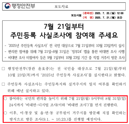 2025년 주민등록 사실조사, 지금 바로 확인하고 참여하세요!