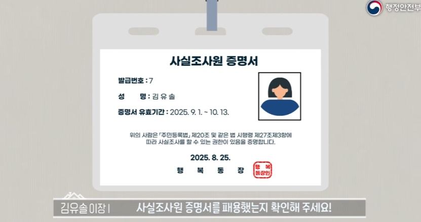 2025 주민등록 사실조사 행정안전부 안내사항 / 출처 : 행정안전부