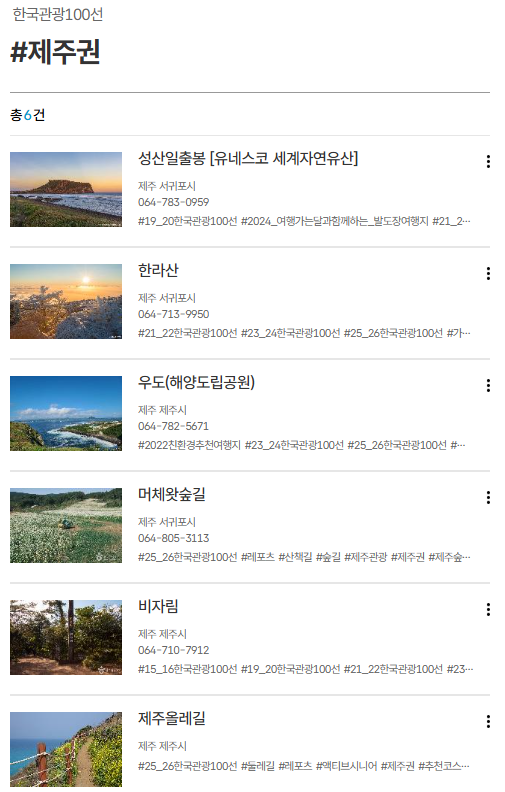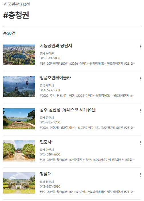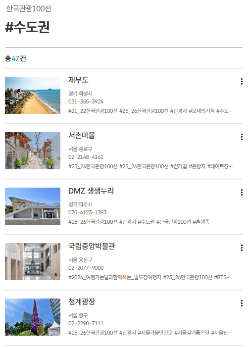 - 정의: 한국을 대표하는 관광지 100곳을 선정한 국가 인증 리스트