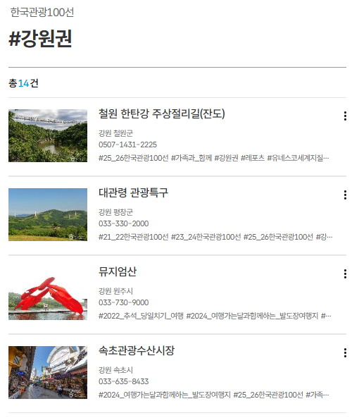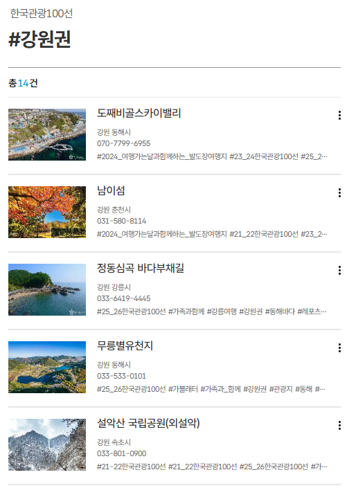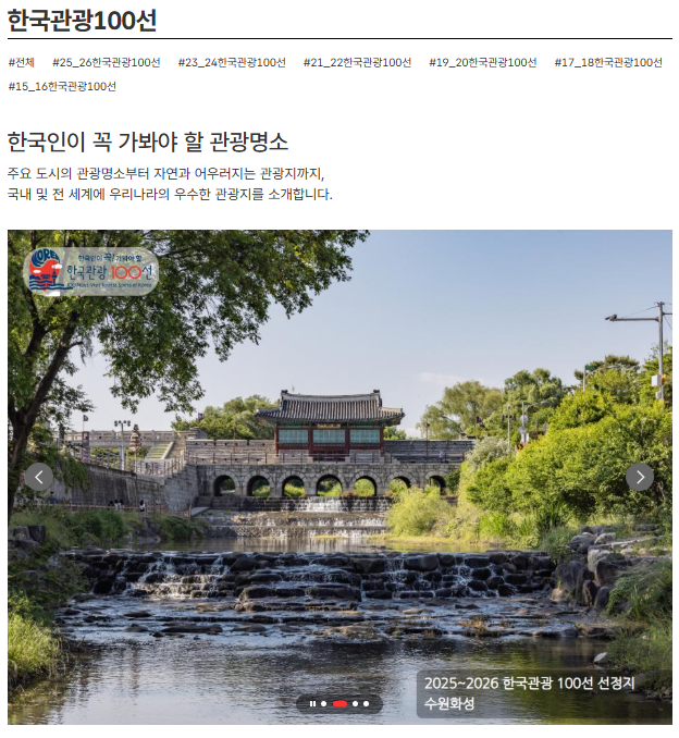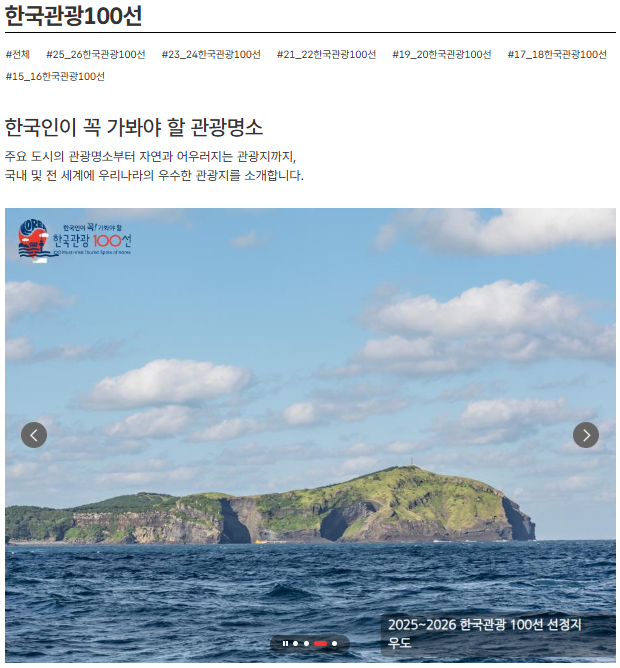 👉 상세 리스트는 대한민국 구석구석 한국관광 100선 페이지에서 전체 확인 가능합니다.